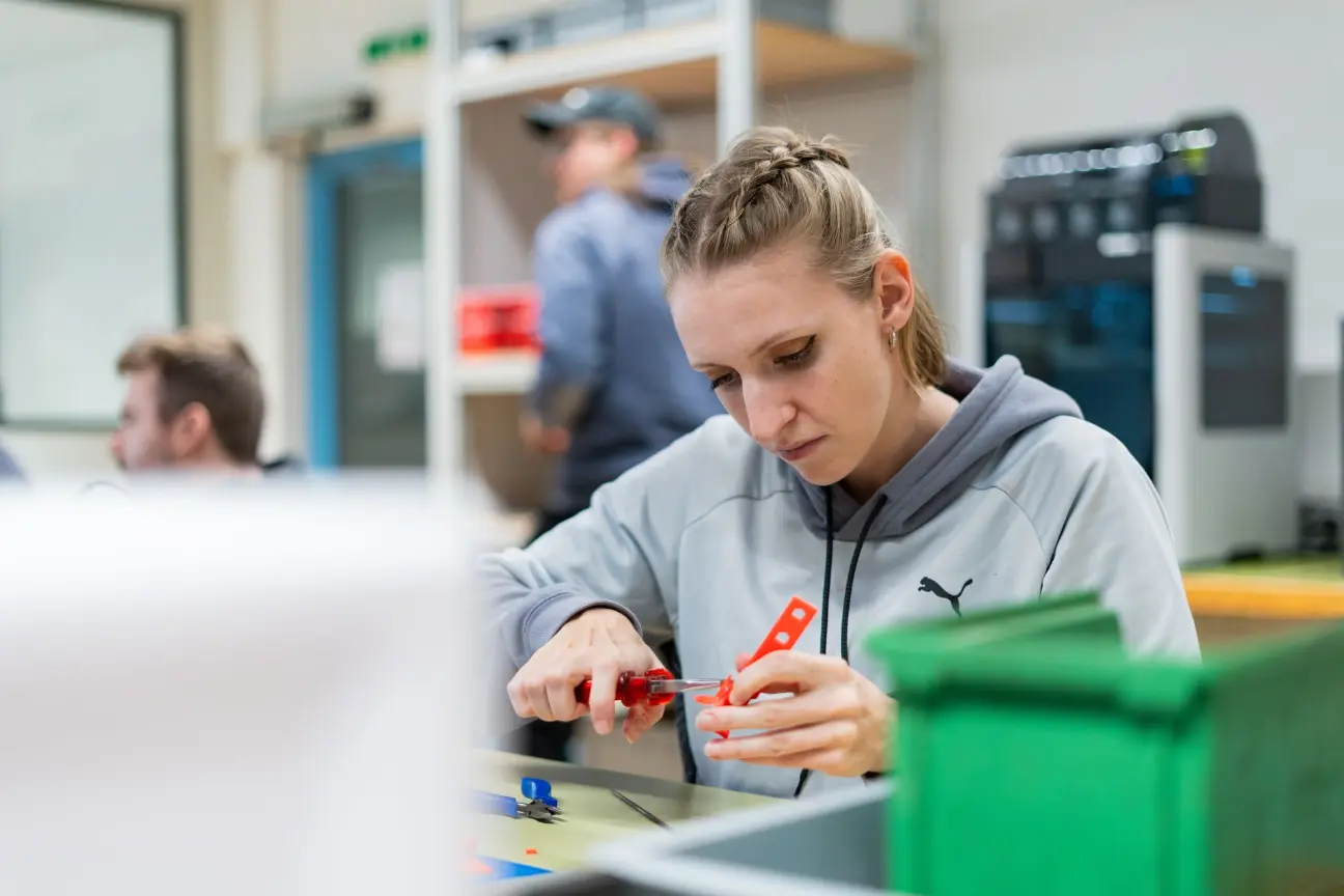 Heute bearbeitet sie selbstständig Aufträge, stellt die Abteilung bei Firmenrundgängen vor und moderiert den internen Lernenden-Kreis.